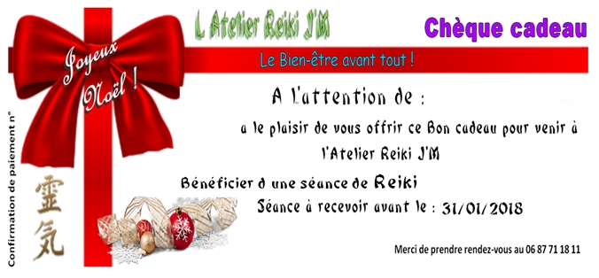 - 1 - Venez le retirer directement à l'Atelier Reiki J'M, après en avoir passé commande par téléphone.